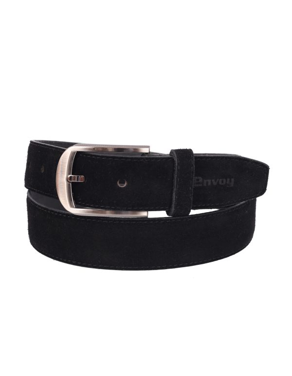 Skinnbälte med mocka struktur Färg: Svart Bredd:
